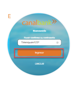 E. Vuelve a la banca en línea y coloca tu contraseña, el sistema va a solicitar que la coloques dos veces exactamente igual.